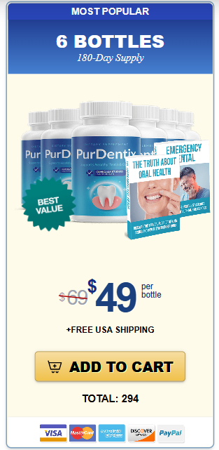 The initial value on the Official Website is $294 for a package of 6 bottles of Purdentix (just $49 per bottle).